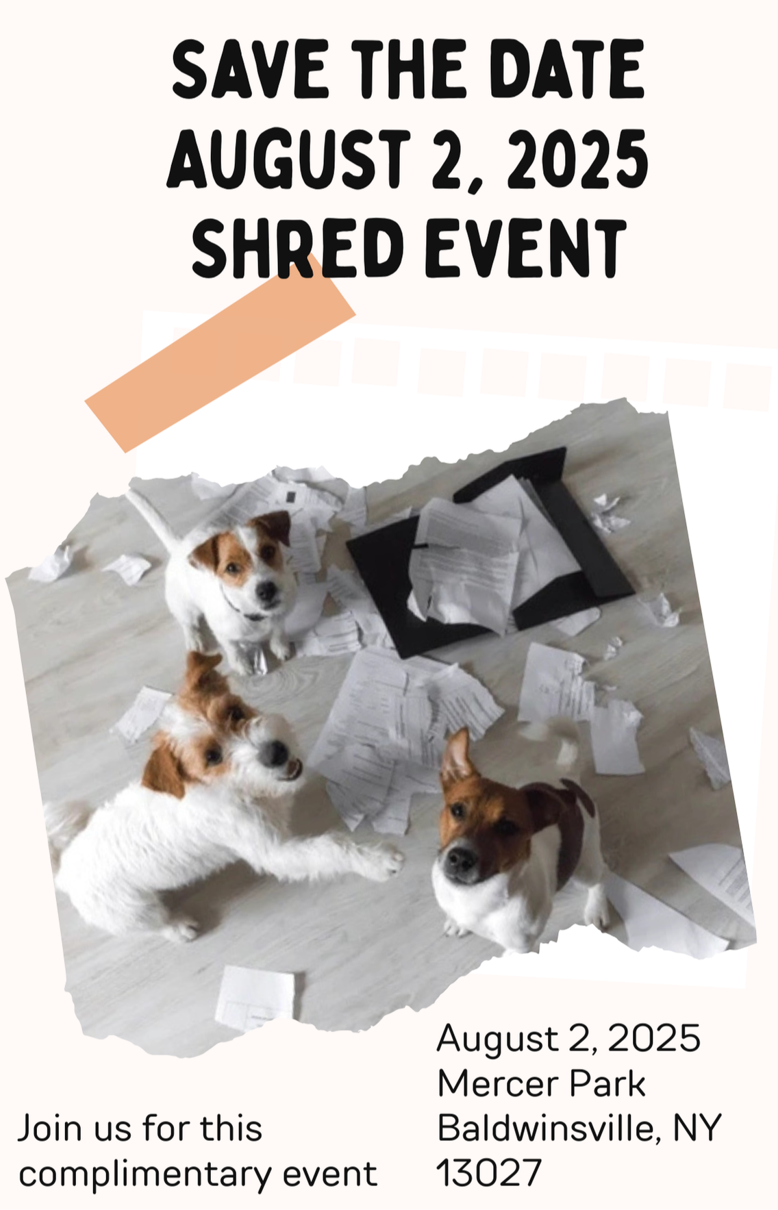 Let us do the shredding for you! Join us at our 3rd annual complimentary shredding event at Mercer Park. Safely shred old bank statements, tax returns, outdated medical records and any documents containing personally identifiable information.